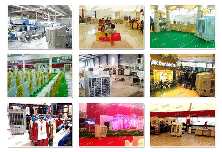 Desert Coolers are also known as Movable or Portable Jumbo Coolers or Mobile Evaporative Coolers. C2India Desert Coolers provide Most Efficient & Cost Effective Cooling Solution for Industries, Factories, Spinning Mills, Textile Mills, Rice Mills, Cashew Factories, Convention Centers, Cinema Halls, Fabric industry, Warehouses, Tent House, Weddings, Shopping Malls, Hotels, Outdoor Restaurants etc. Desert Coolers consume very low power, as result your Power Bill will be reduced.